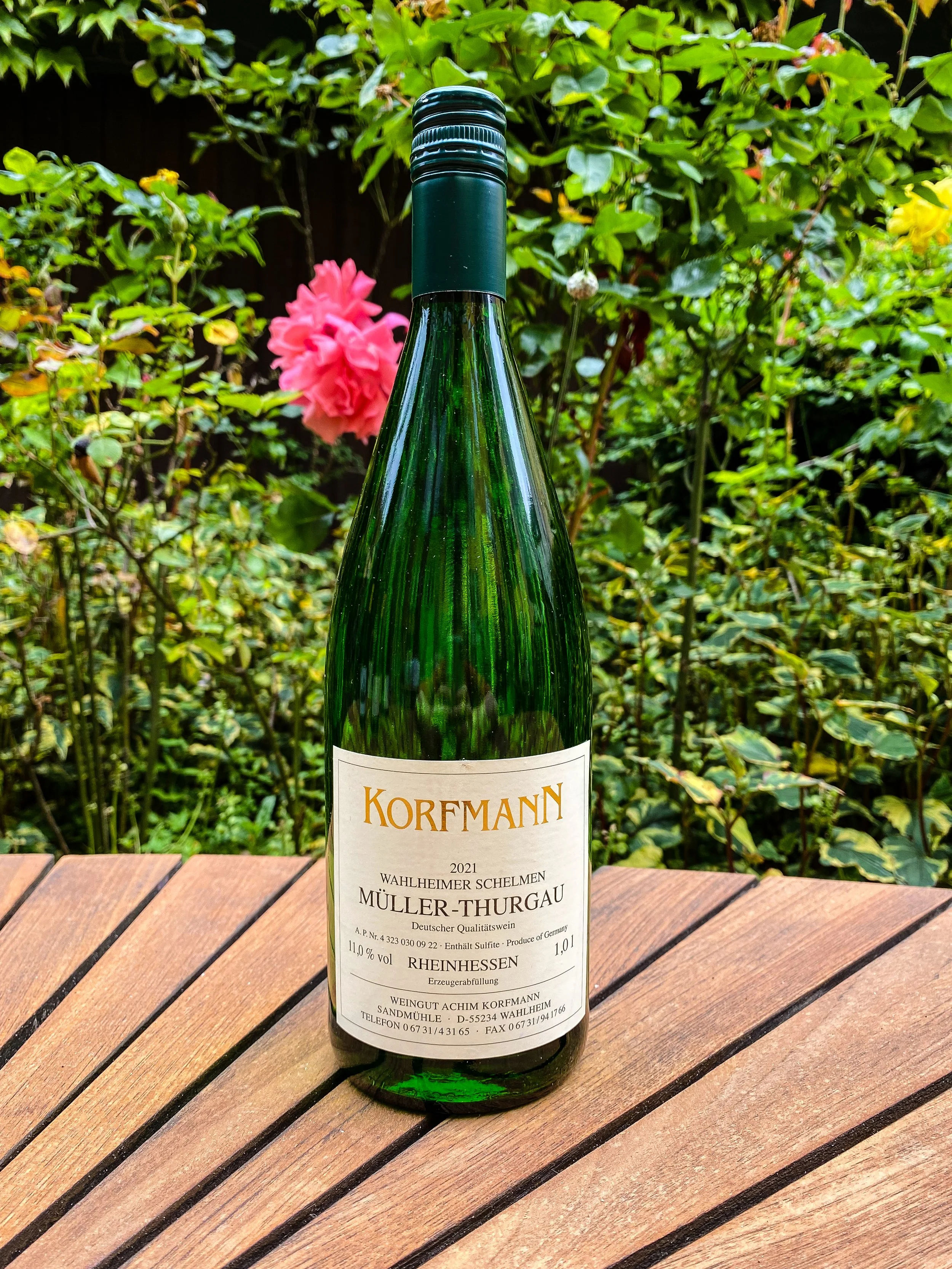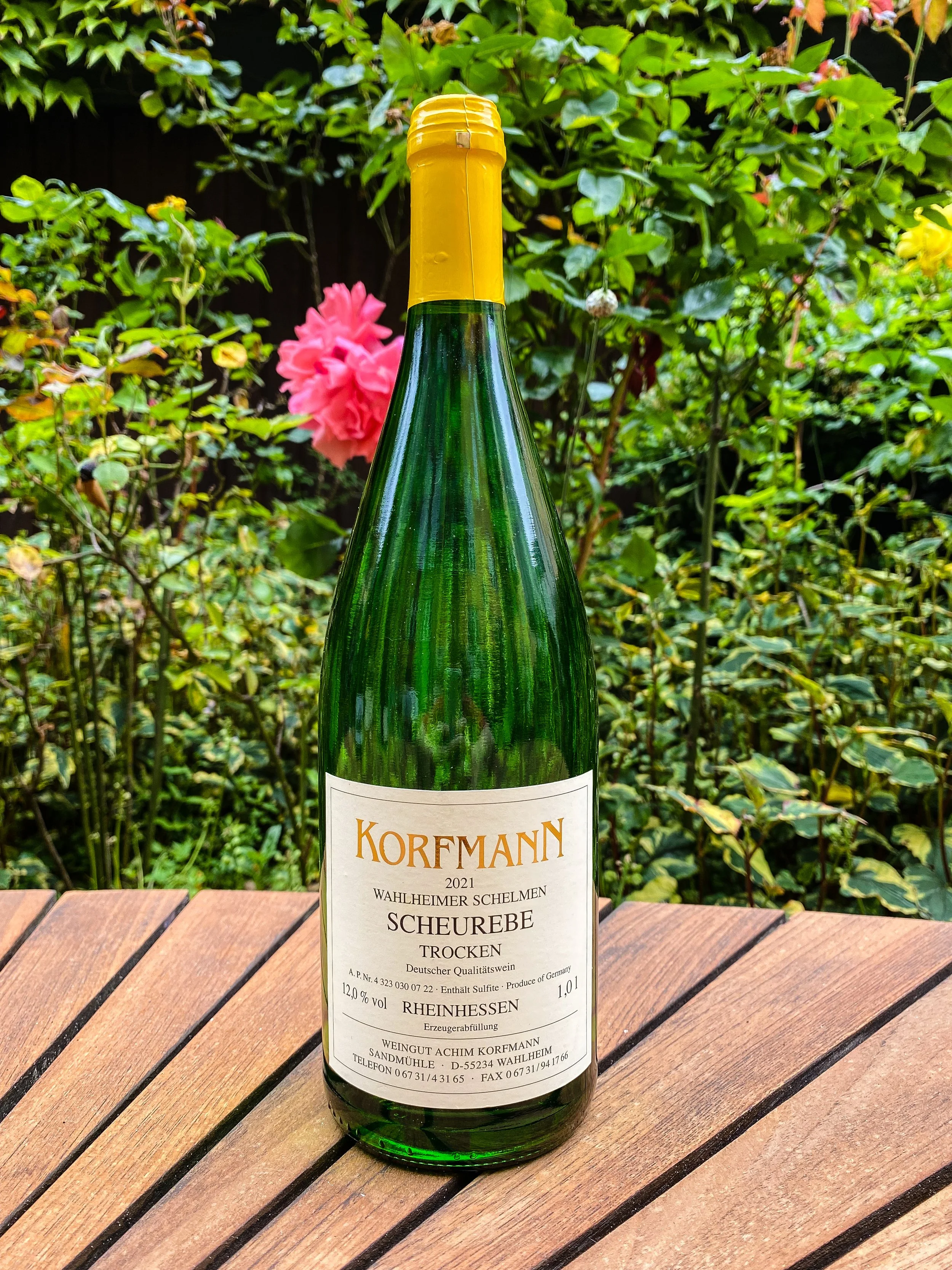 Korfmanns Riesling er meget frisk og boblende med den typiske smag af Riesling-syre. Vinen har en let og fin aroma af abrikoser og passer især godt til fisk.